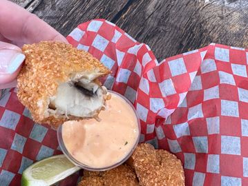 Lightly breaded and deep fried chunky mushrooms with our signature Boom Boom Sauce and a wedge of lime.